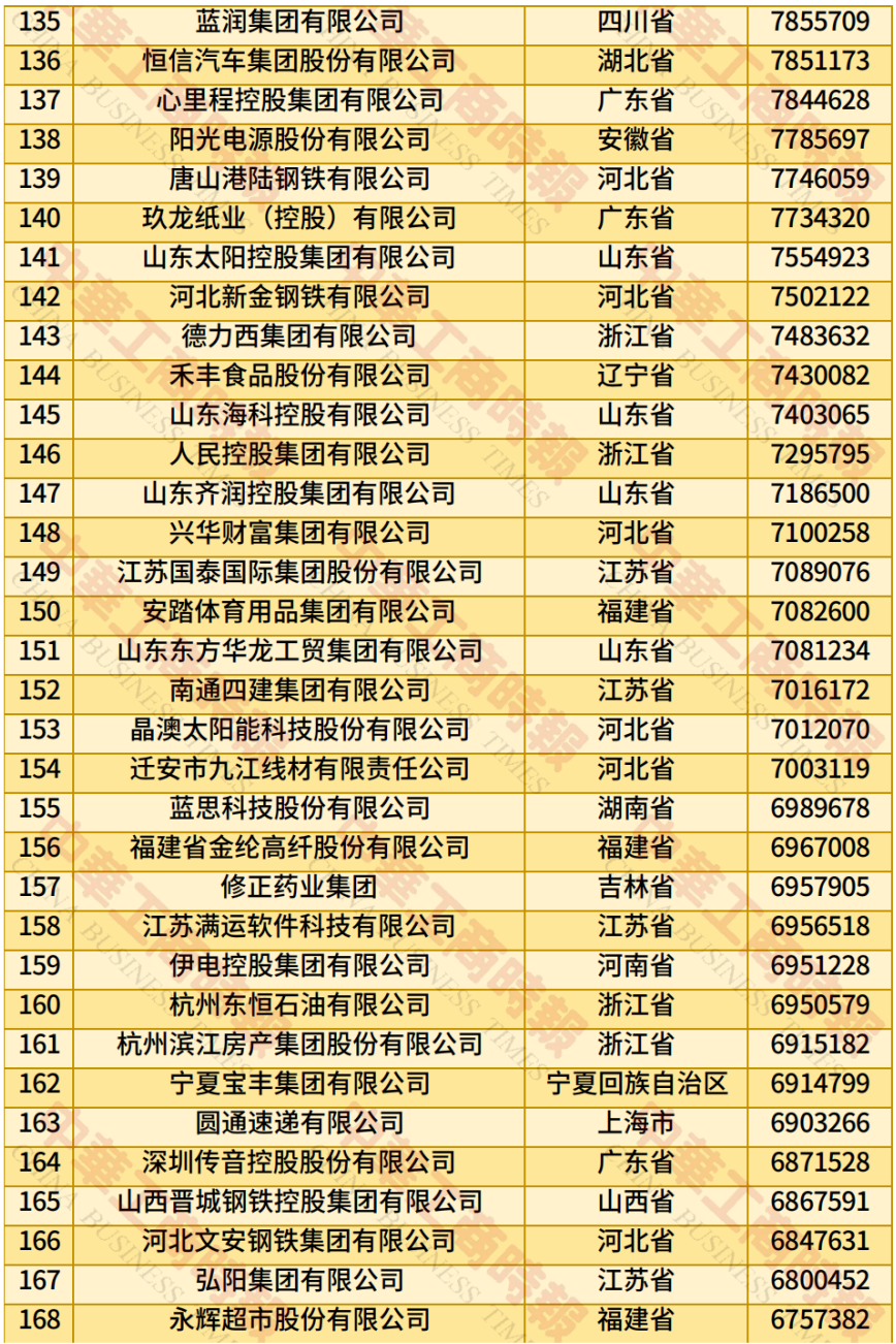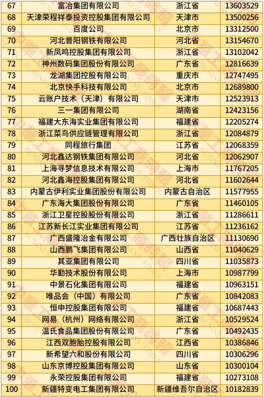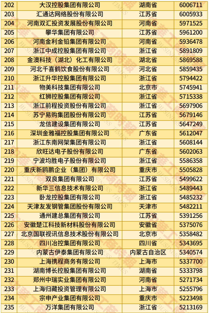 8月28日,全国工商联在辽宁沈阳发布“2025中国民营企业500强”。结果显示,京东集团、阿里巴巴(中国)有限公司、恒力集团有限公司位居前三。记者了解到,此次民营企业500强入围门槛增至270.23亿元;营业收入总额达到43.05万亿元;净利润合计1.80万亿元;研发费用总额1.13万亿元,研发人员总数115.17万人,平均研发经费投入强度2.77%;纳税总额达1.27万亿元,纳税额超过10亿元的企业有240家,占500强比例为48.00%。今年全国工商联组织开展第27次上规模民营企业调研,共有6379家2024年营业收入10亿元以上的企业参加,其中营业收入前500位的企业为“2025中国民营企业500强”。 2025中国民营企业500强榜单 ↓