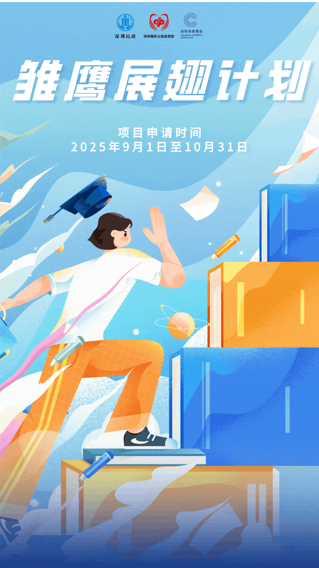 “雏鹰展翅计划”是深圳市民政局、深圳市慈善会、深圳商报于2004年联合发起的助学公益项目,旨在为深圳地区低保、低保边缘的寒门学子筑牢大学深造、展翅高飞的保障线。